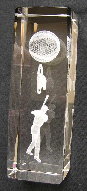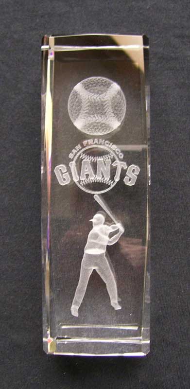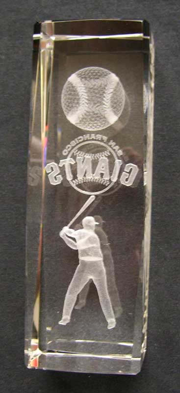 Size is 5-5/8" high by 2" wide x 2" deep I've already been in contact with Steuben Glass, the current provider for all MLB glass and according to the person I spoke to it's not one of their products (it also lacks the Steuben signature). |