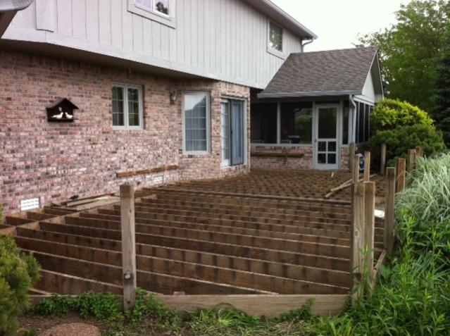 Old wood has been removed, thanks to an ad on craigslist where someone removed it and hauled it away for free. I'm going to re-use the existing joists/posts from the old deck.