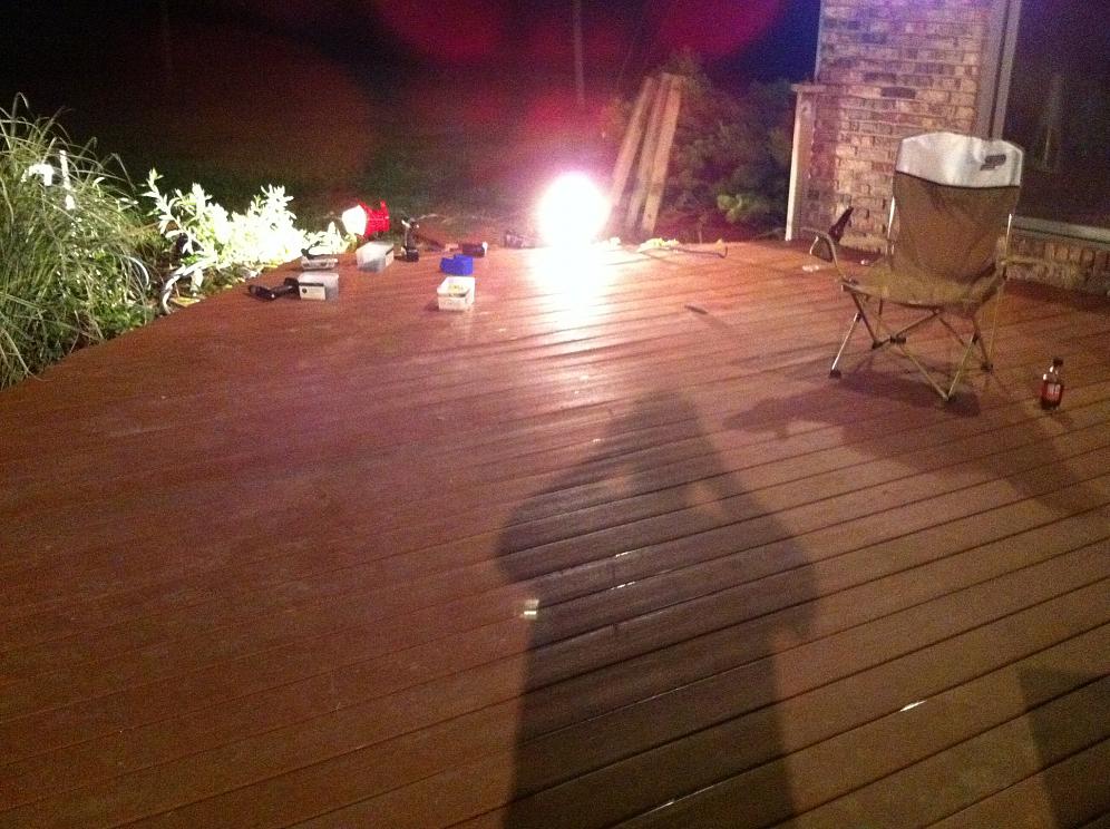 It's not a big start, but I'm starting to get the hang of it now. I'm using Camo Fasteners and it's taking just a bit of a learning curve to get this all figured out. After about 3-4 more boards, I'll be able to start using full length 12', 16', and 20' boards which will do wonders to speed things along. Probably done working on it until Wednesday as I have an exam on Tuesday to prepare for.