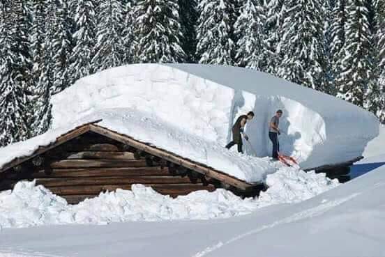This is a picture of 2 men in short sleeves shoveling snow off a roof in Lolo Pass, Montana. That's on I-90 on the border into Idaho. I am trying to find out how long it took for all the snow to accumulated, but wouldn't be surprised to find out that it occurred over 1-2 days.